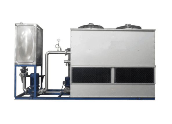 Een gesloten koeltoren (ook een verdampende luchtkoeler, verzegelde koeltoren of afgesloten koeltoren genoemd) herbergt een buisvormige warmtewisselaar in de toren.Het koeleffect wordt bereikt door warmte-uitwisseling tussen circulerende lucht, spuitwater buiten de buizen en circulerend water binnen de buizen.